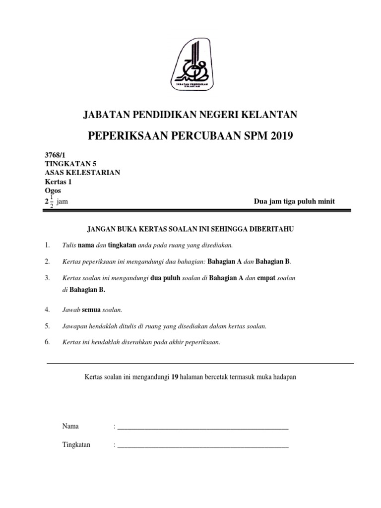 Asas Kelestarian K1 Trial Spm Jpn Kelantan 2019 Pdf
